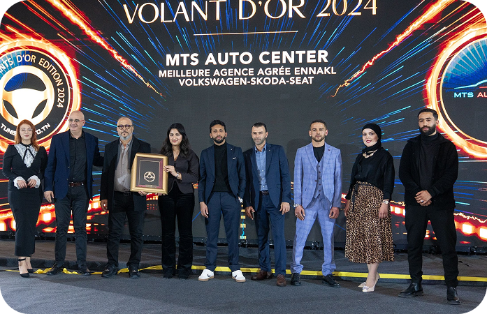 Félicitations à MTS Auto Center pour cette distinction prestigieuse ! Lors de la 7ᵉ édition des Volants d’Or, organisée le 22 février 2025 à Tunis, MTS Auto Center a été honoré en recevant le Volant d’Or 2024 en tant que “Meilleure Agence Agréée Ennakl Volkswagen-Skoda-Seat”